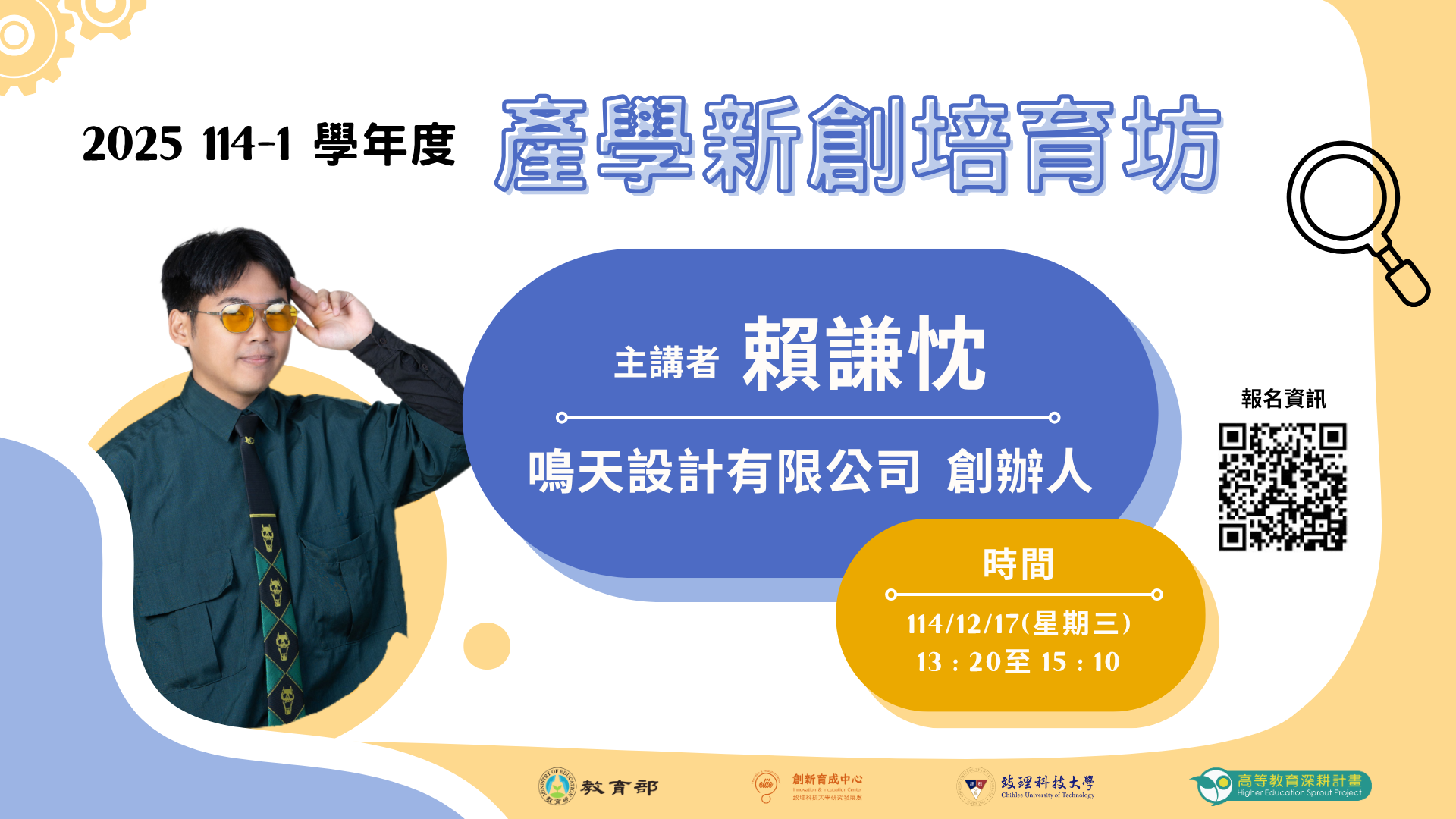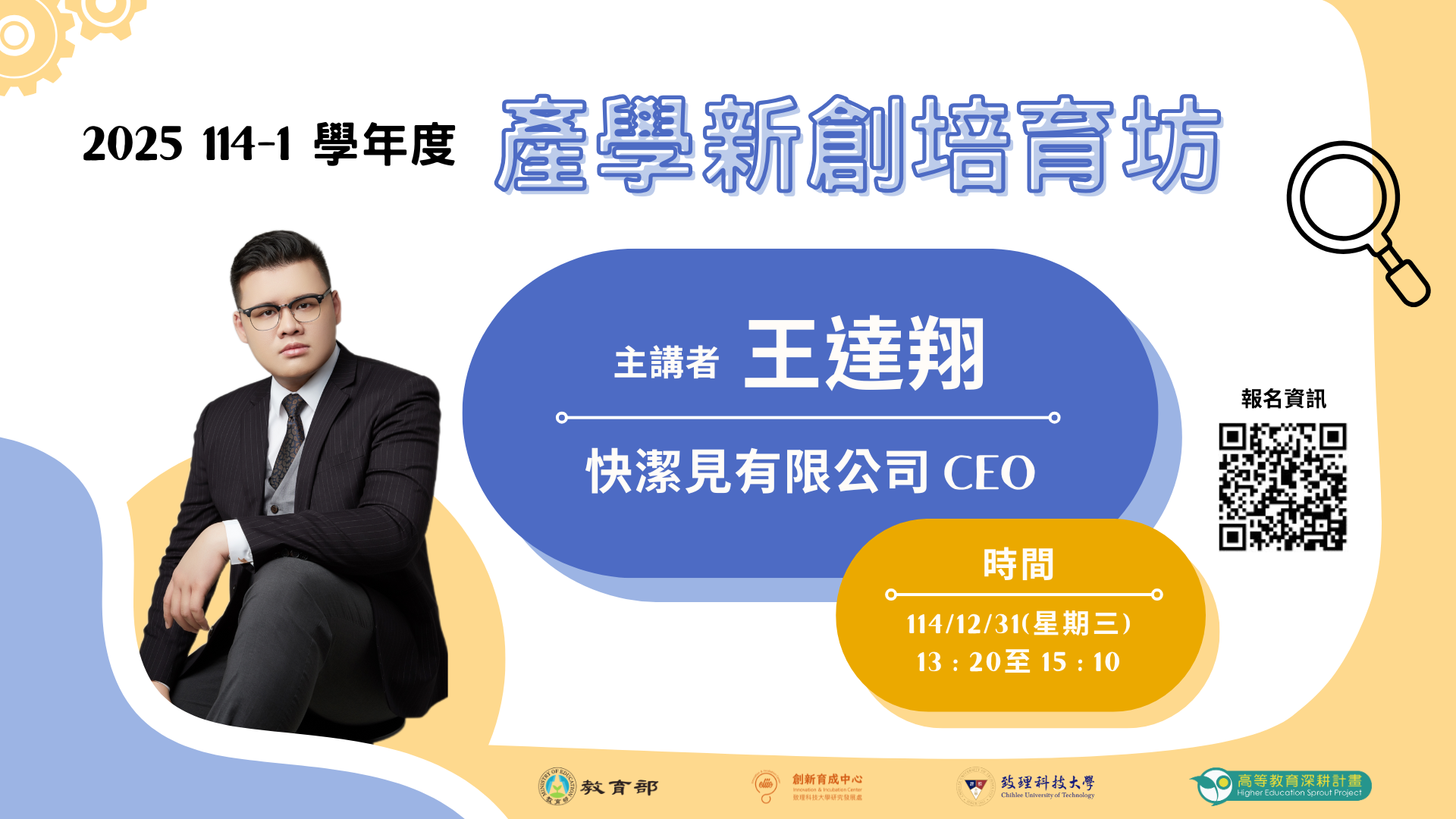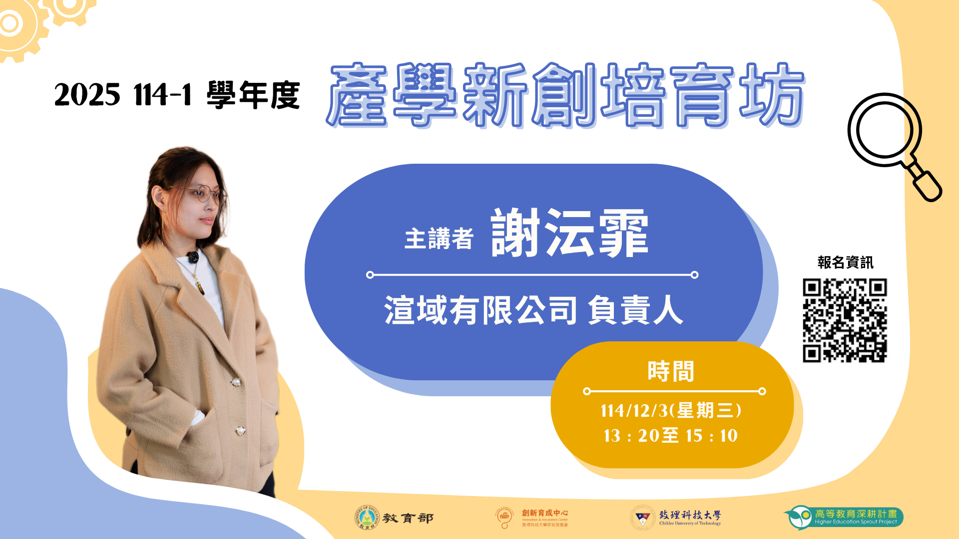 【創新育成中心】【最新消息】2025產學新創培育坊系列公告:七大創業青年分享,點燃你的創新火種!